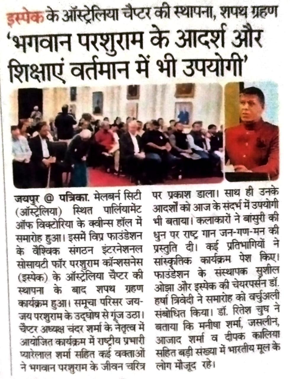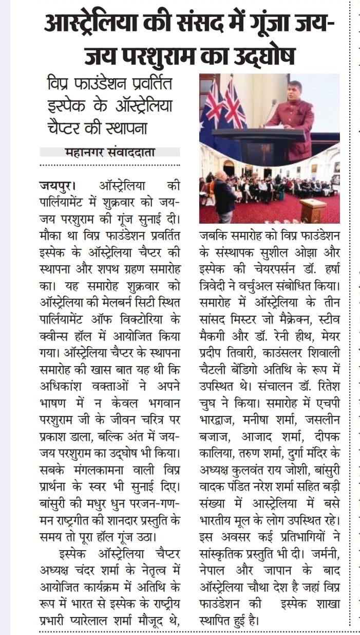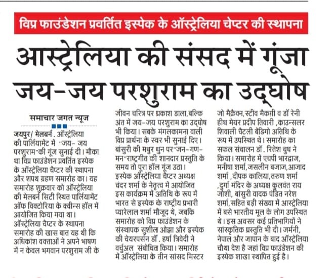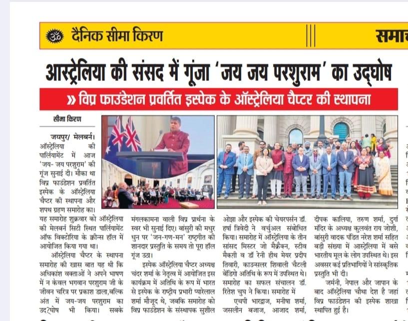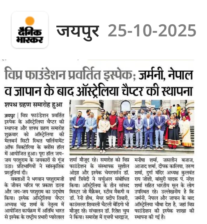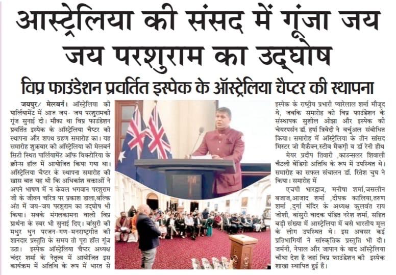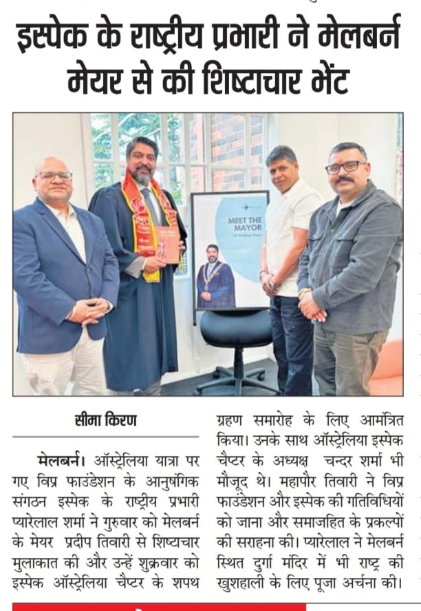 मेलबर्न स्थित विप्र फाउंडेशन प्रेरणा प्रेरित ISPAC-Australia शाखा द्वारा भारतीय स्वतंत्रता दिवस का सफ़लतापूर्वक आयोजन संपन्न। इस अवसर की शोभा बढ़ाने हेतु मेलबर्न के मेयर श्री प्रदीप तिवारी, संस्था के अध्यक्ष श्री चन्द्र शर्मा एवं सभी सहयोगी साथियों का हार्दिक आभार।
