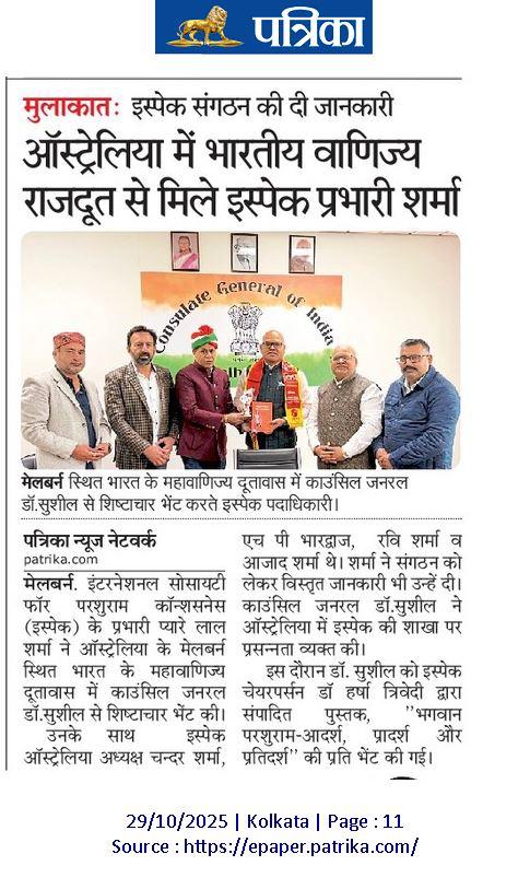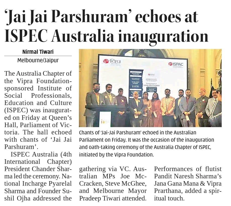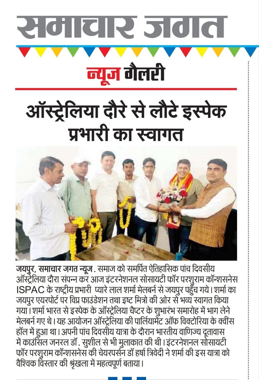 The Chairperson, International Society for Parshuram Consciousness is pleased to appoint the executive committee of ISPAC-Australia Chapter for tenure till 31st March 2026.